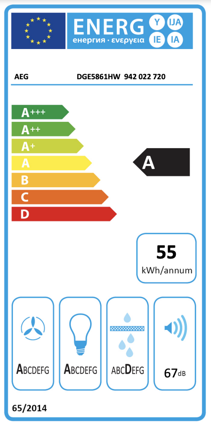 Productinformatie "AEG DGE5861HW 7000 inbouw dampkap - 77cm"