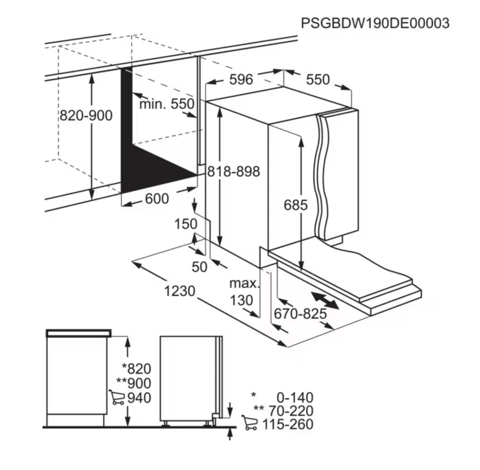 | minimum frontpaneel: | 670 mm |