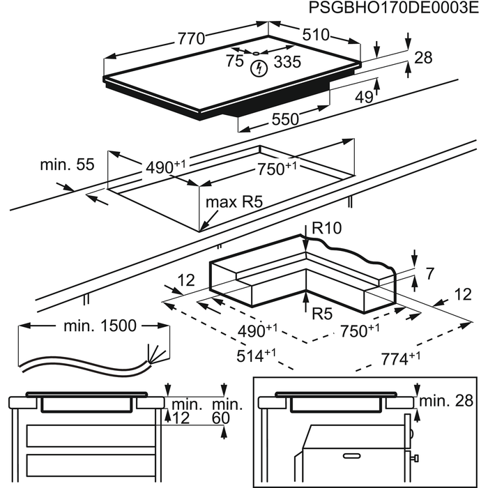 Inbouwafmetingen (HxBxD) in mm: 0x750x490