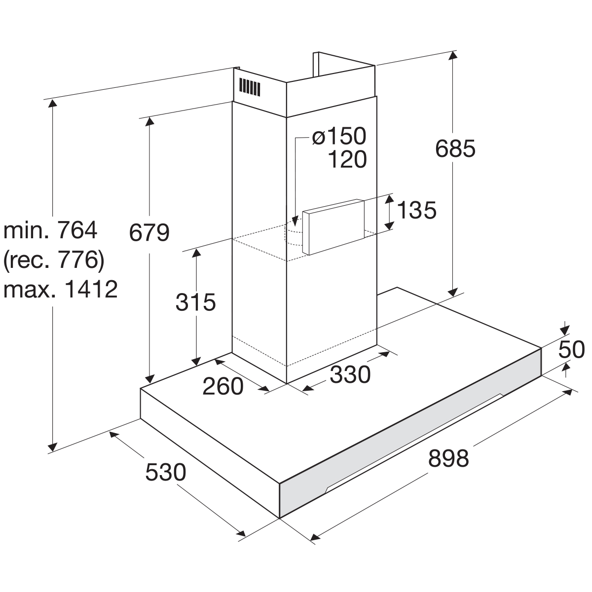 Productinformatie "ATAG WS90212MX wandschouwdampkap - 90cm"