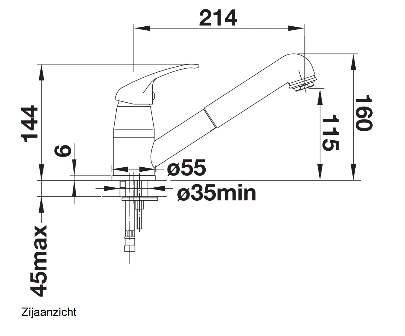 | Uitloop: | Uittrekbare sproeier, Rechte uitloop |
