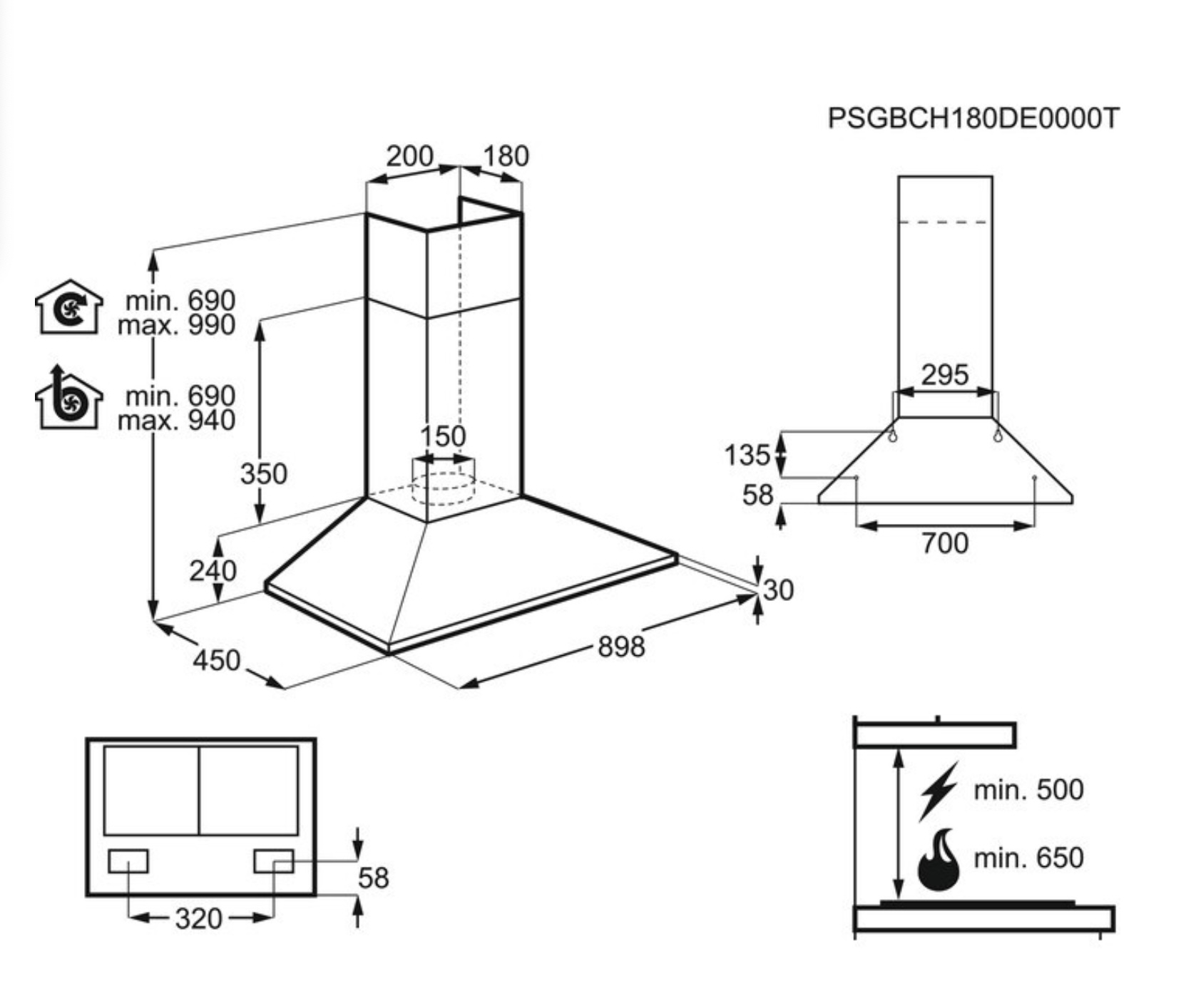 Uitgerust met vetfilter. Bij recirculatie moet er ook een koolstoffilter in de dampkap om geurtjes te verwijderen, verkrijgbaar als accessoire.