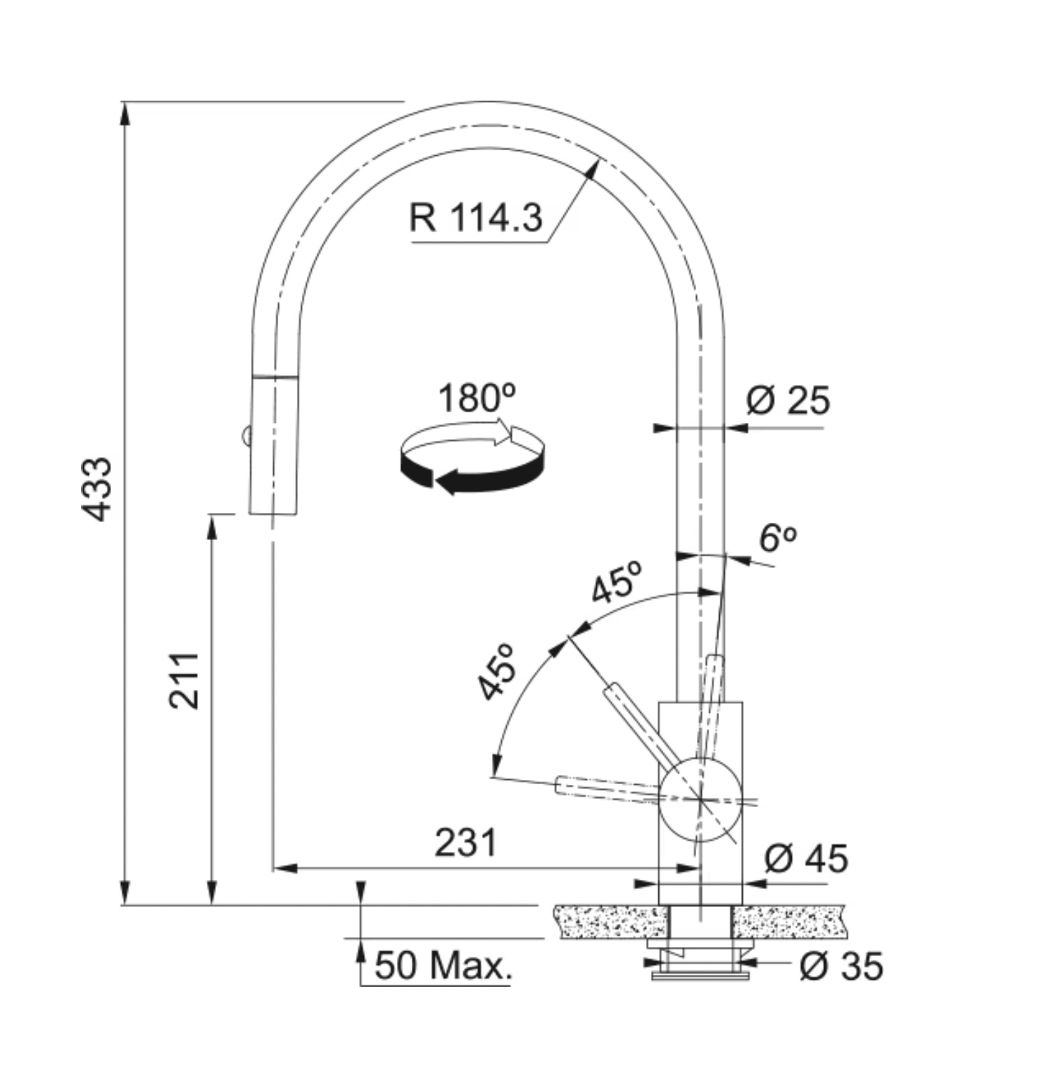 | Uitloop: | U-/c-uitloop, Uittrekbare uitloop |