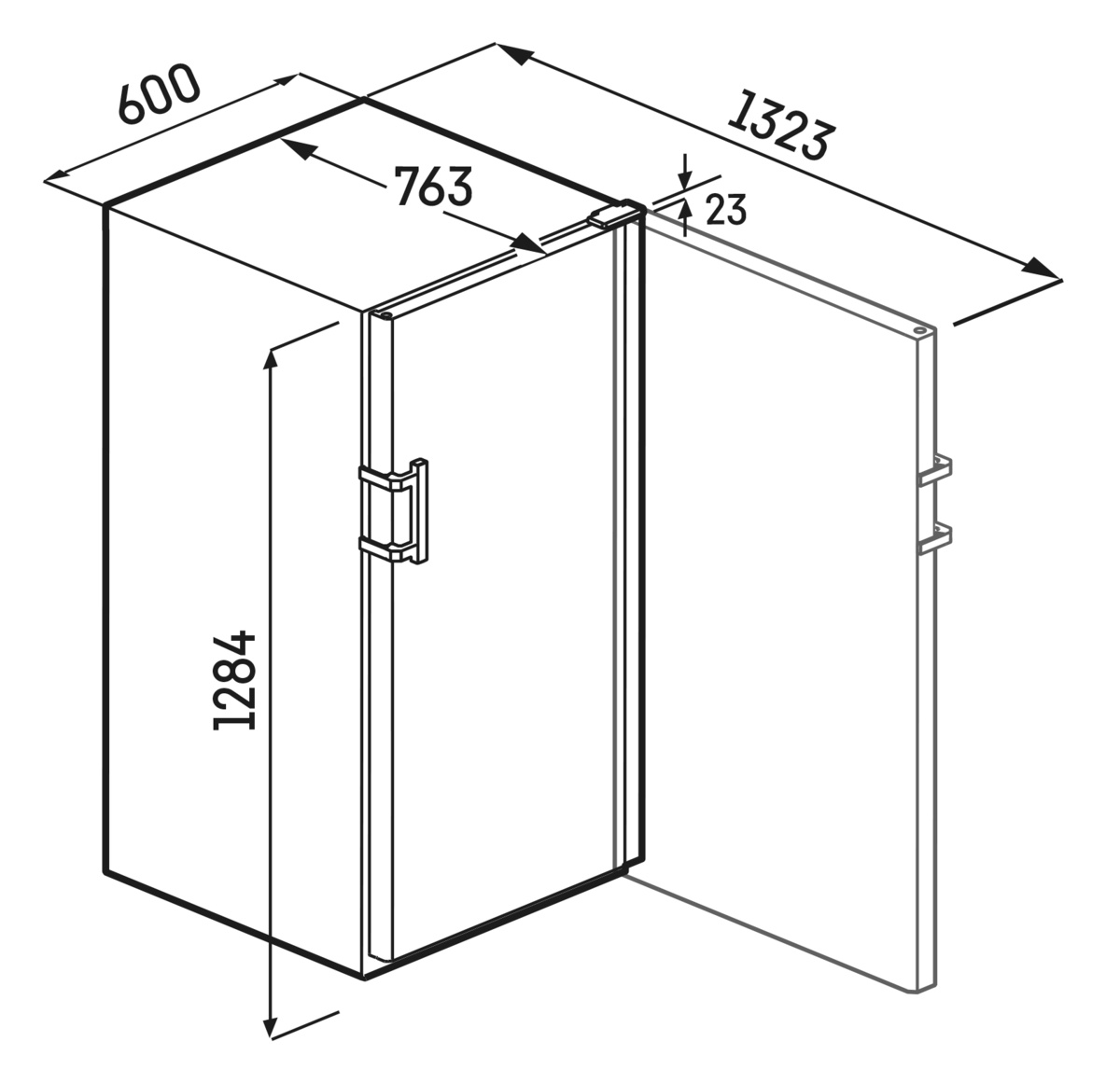 Buitenafmetingen: hoogte / breedte / diepte: 128,4 / 59,7 / 76,3 cm