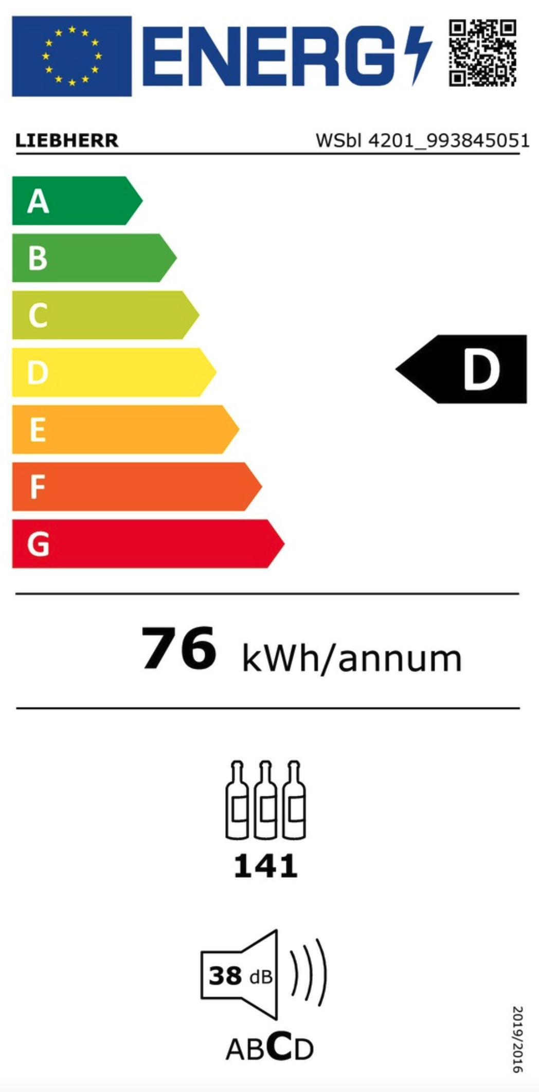 Energieverbruik per jaar: 76 kWh/a
