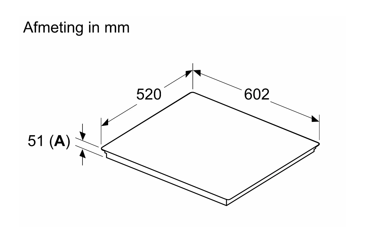 Afmetingen (bxdxh mm): 602 x 520 x 51