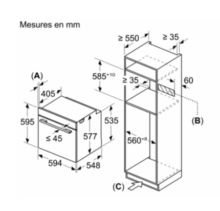 Inbouwafmetingen (HxBxD): 585-595 x 560-568 x 550 mm