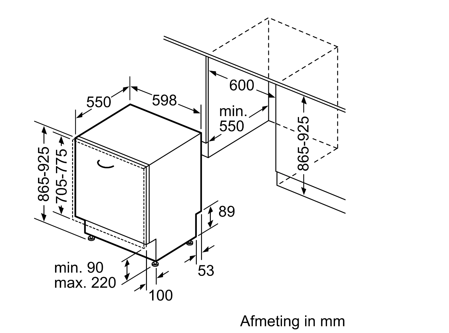 | minimum frontpaneel: | 705 mm |