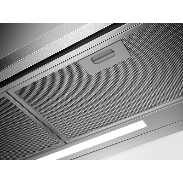 Dampkap geschikt voor luchtafvoer naar buiten alsook voor recirculatie. Uitgerust met vetfilter. Bij recirculatie moet er ook een koolstoffilter in de dampkap om geurtjes te verwijderen, verkrijgbaar als accessoire.