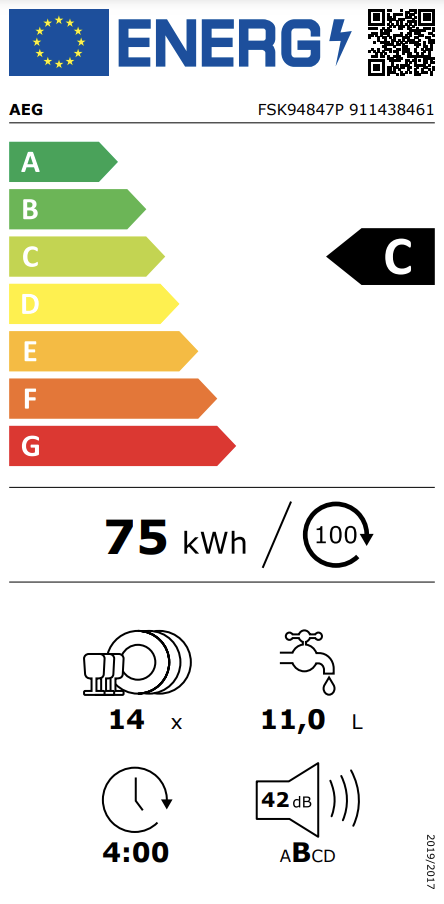 Productinformatie "AEG FSK94847P 9000 vaatwasser volledig integreerbaar"
