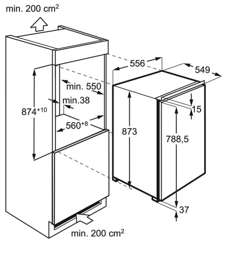 Productinformatie "AEG OSK5O88EF 5000 koelkast zonder vriesvak - 88cm"