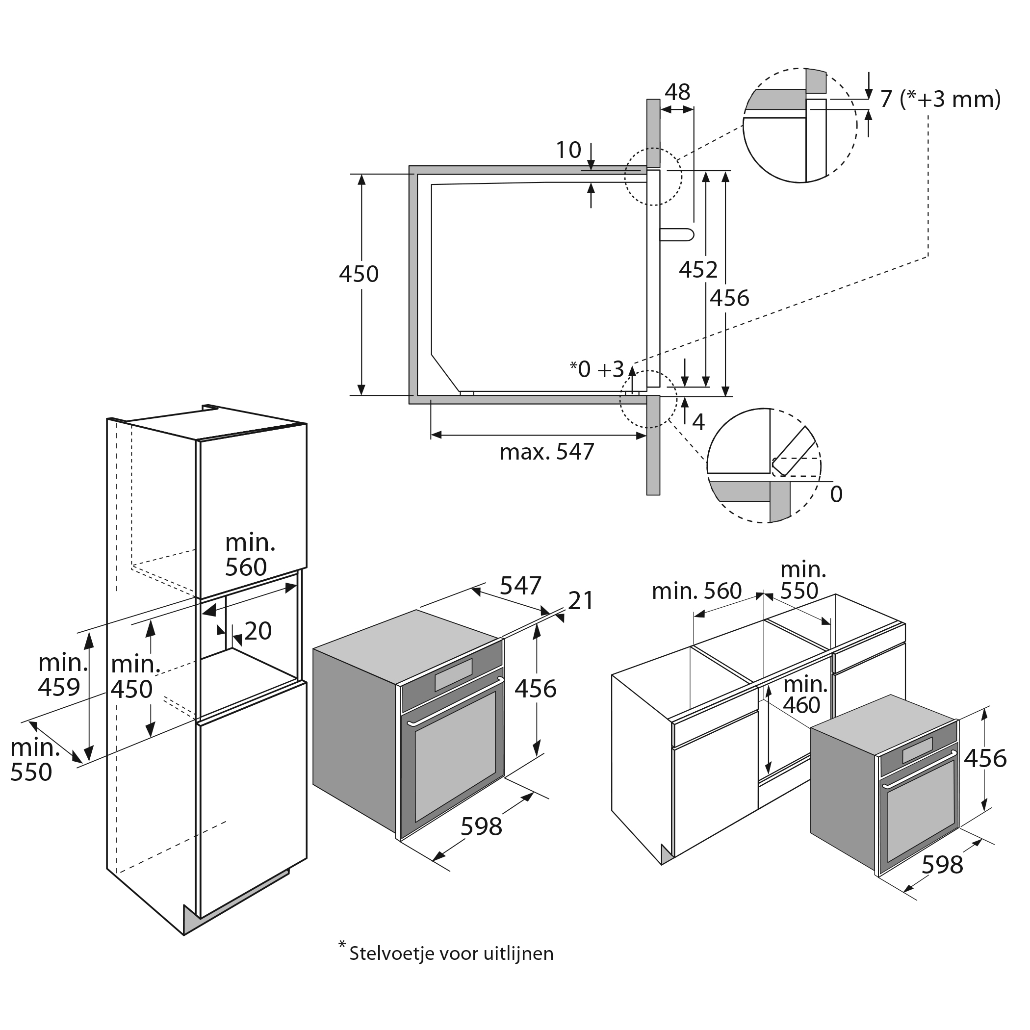 inbouw mogelijk in: hoge kast, onder werkblad