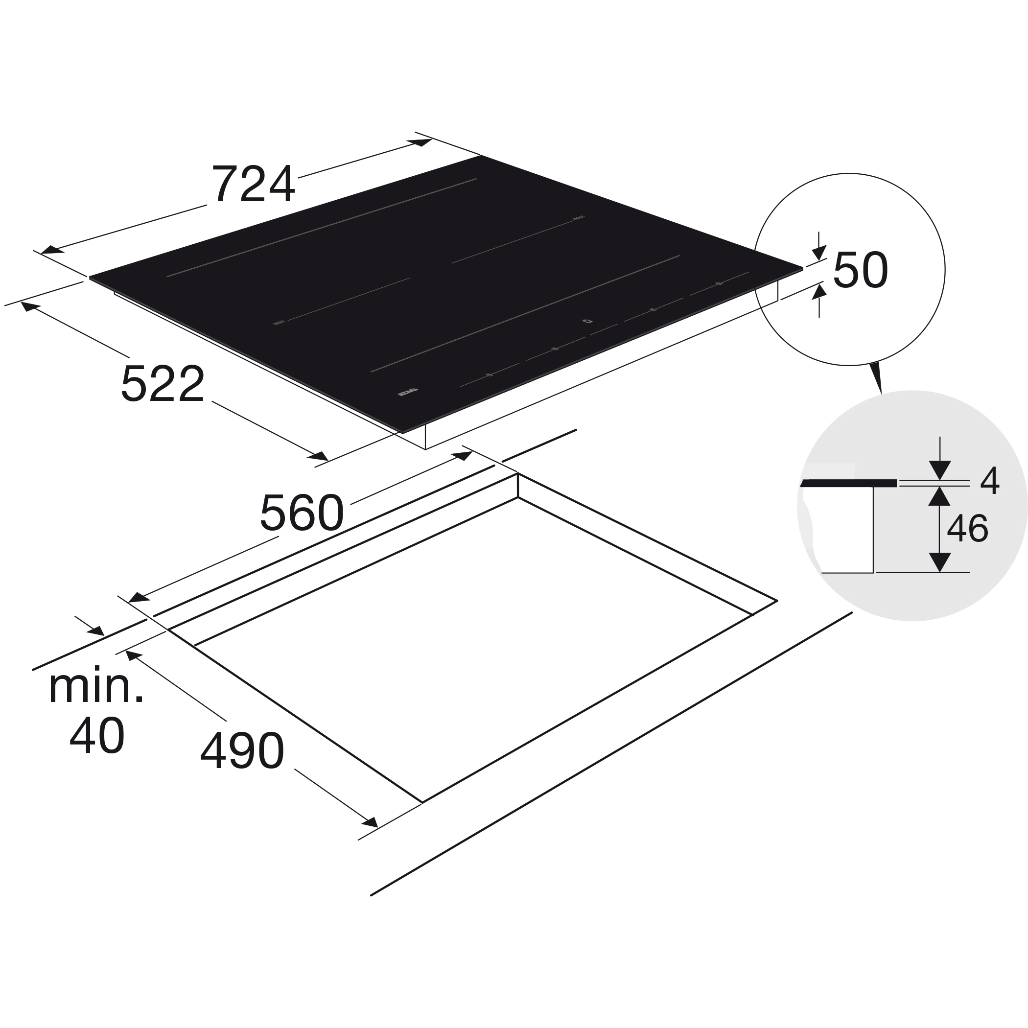 - verlichting en standen te bedienen via inductiekookplaat