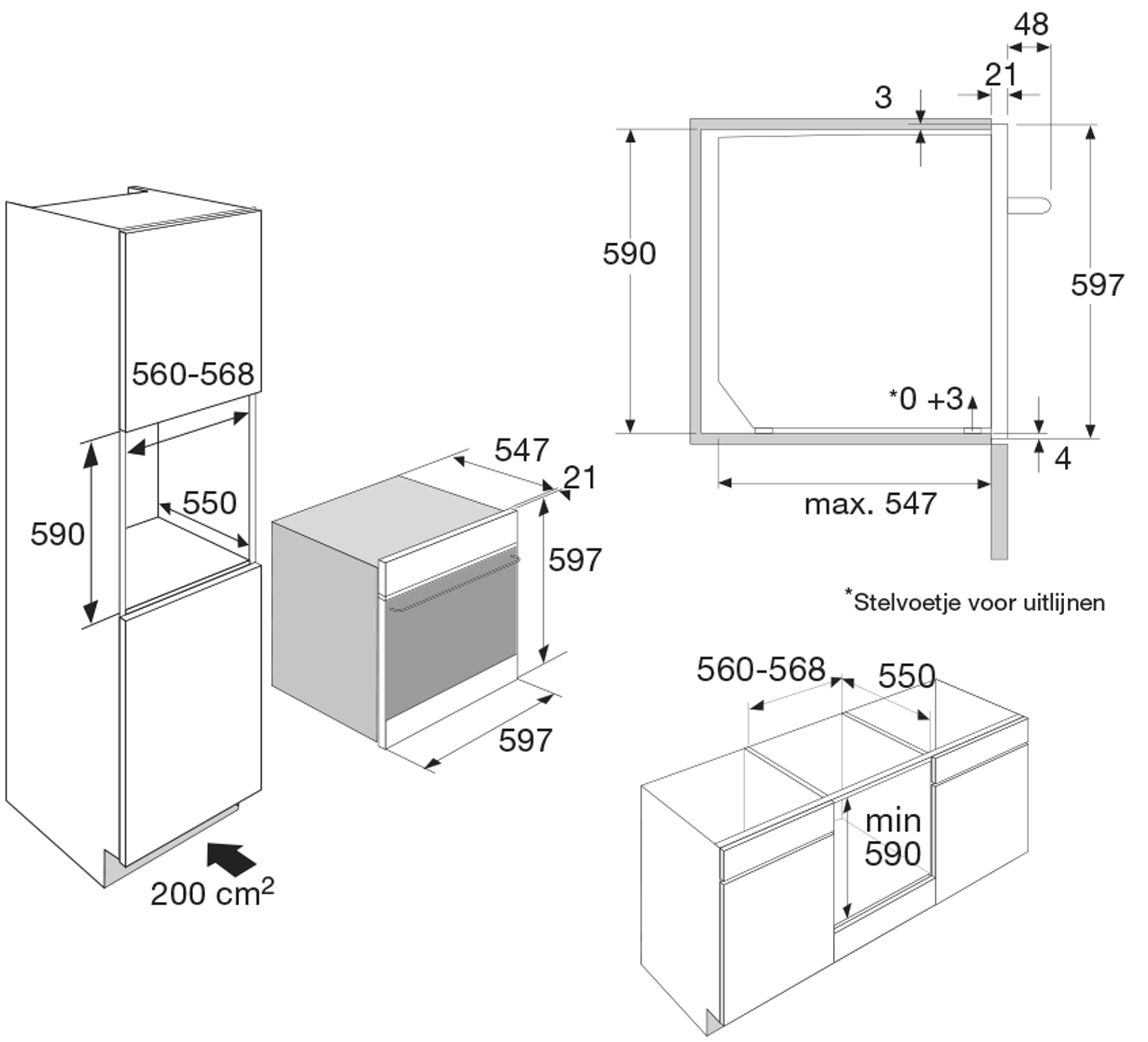 inbouw mogelijk in: hoge kast, onder werkblad