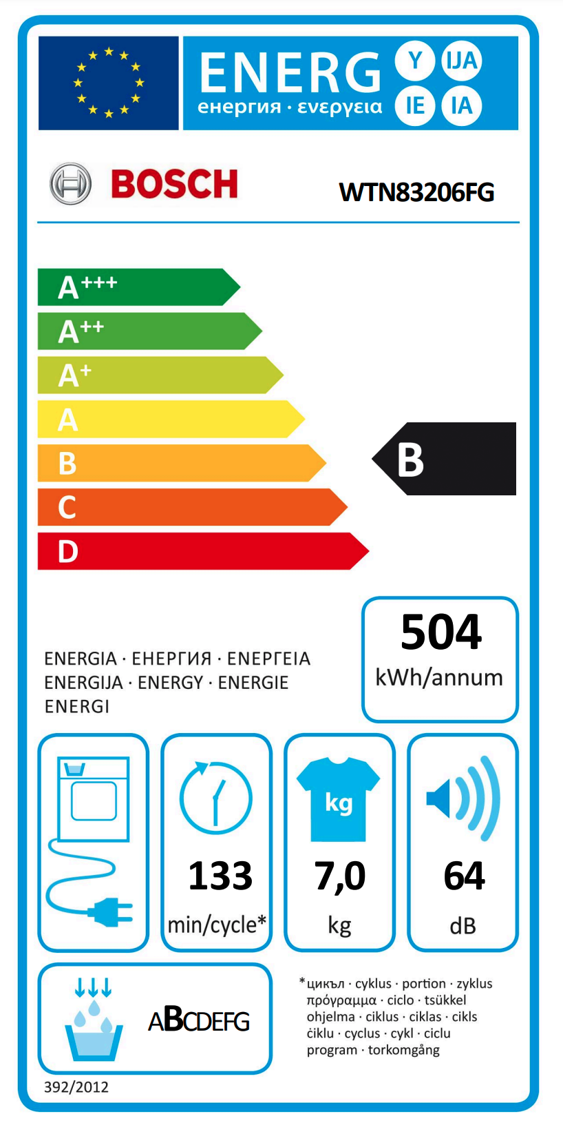Productinformatie "BOSCH WTN83206FG droogkast"