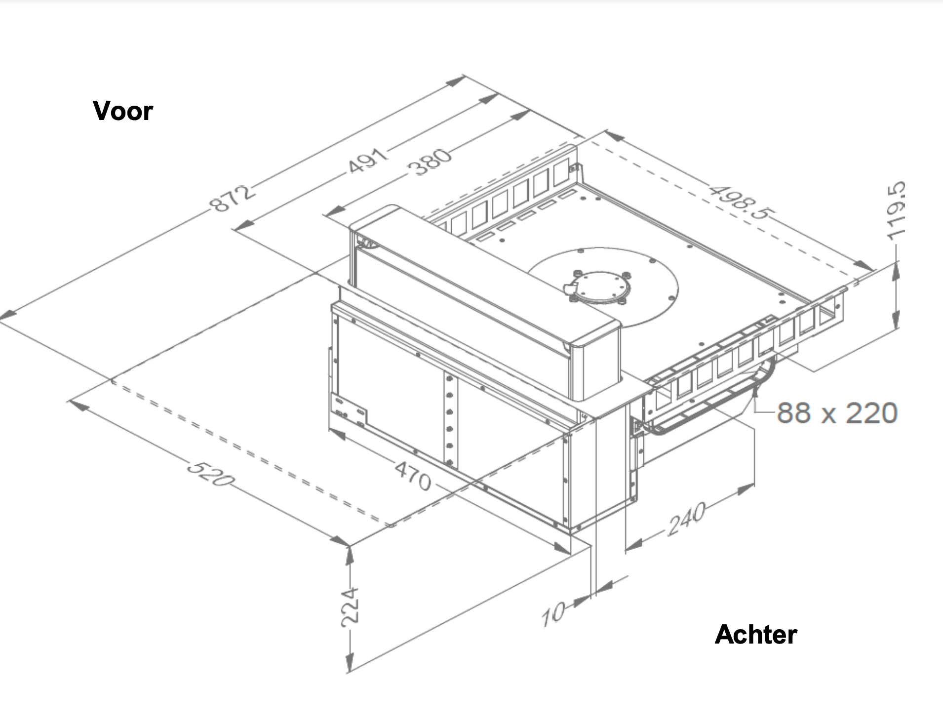 Afmetingen (BxDxH) (mm) 872 x 520 x 224