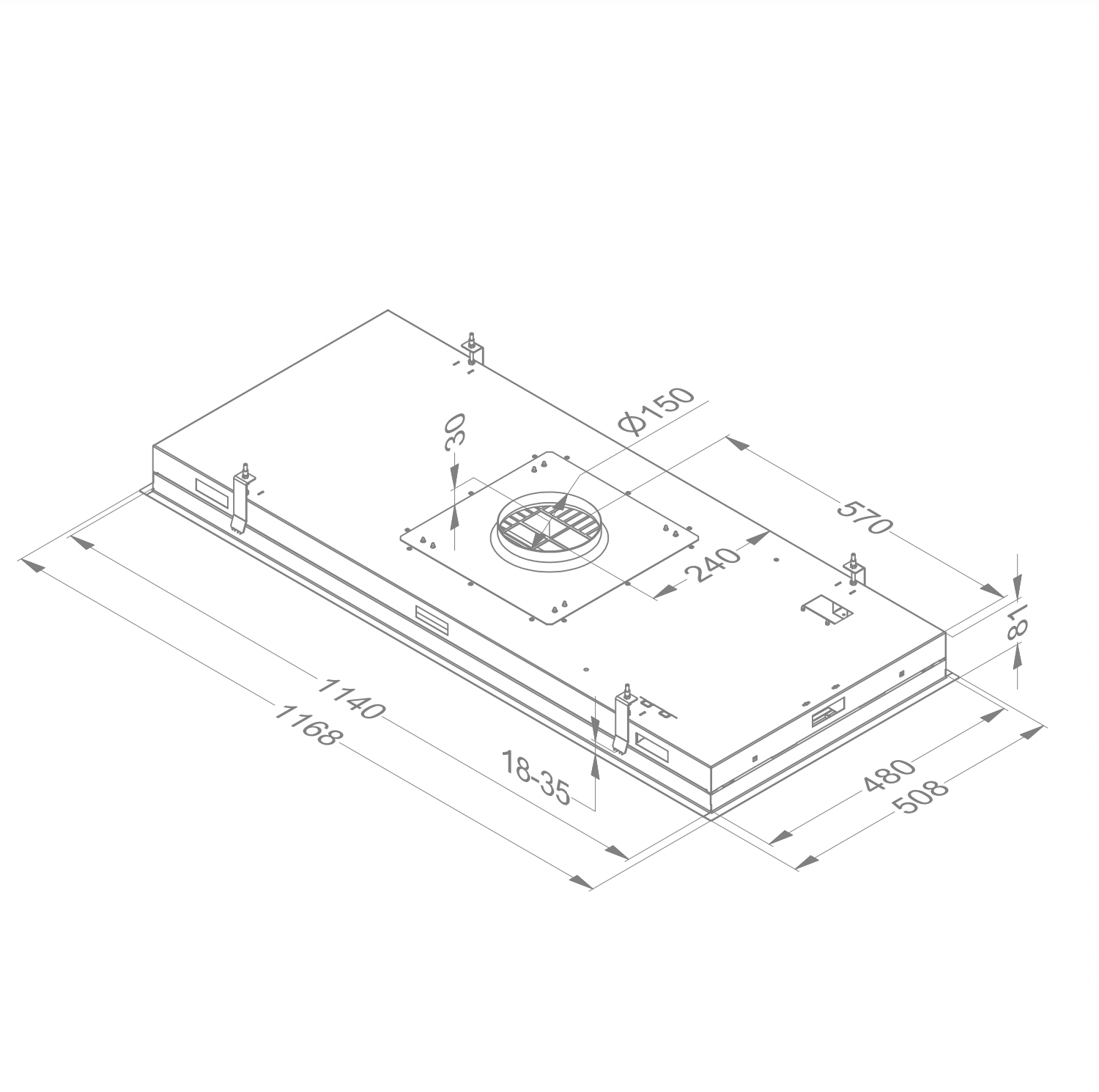 Product afmetingen (BxDxH) (mm) 1168 x 508 x 81