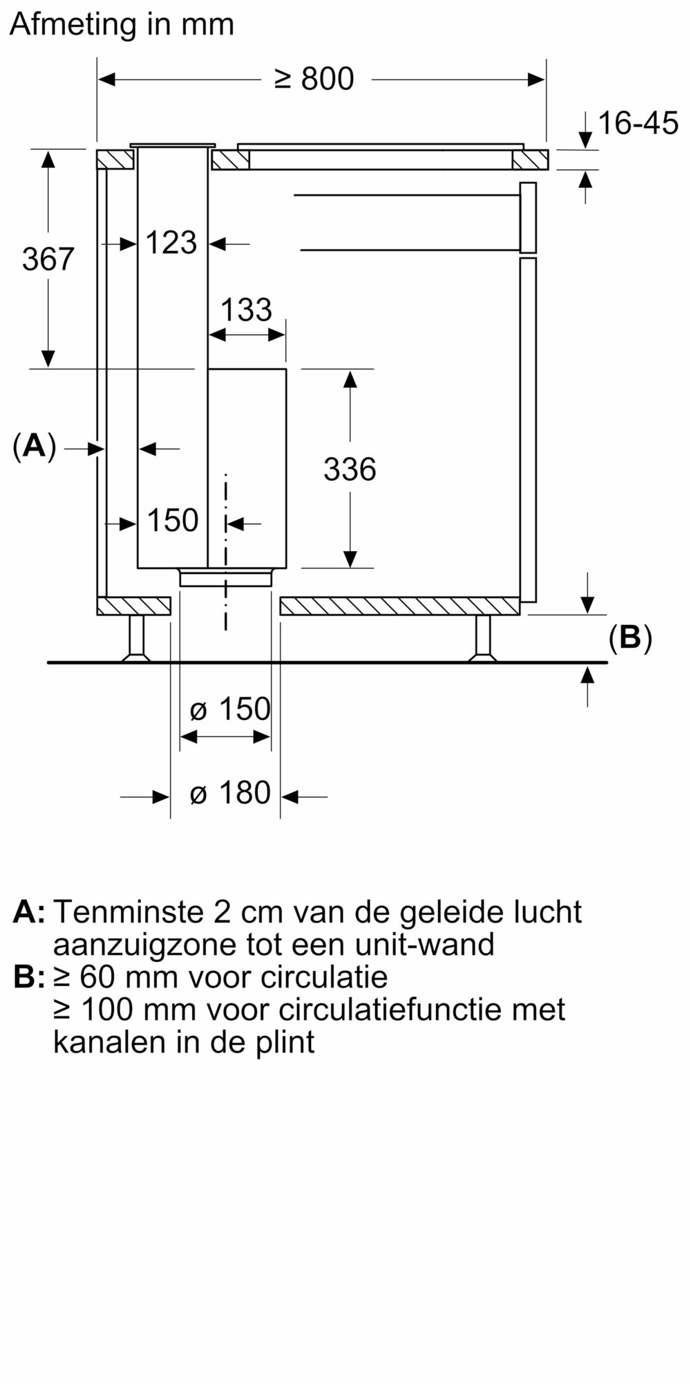 Voor installatie in een meubel van 90 cm